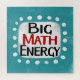 "Big Math Energy" es un divertido diseño de texto con una forma de acento blanco rodeado de puntos de textura caprichosos y blancos.