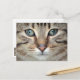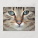 Esta tarjeta para los amantes de los gatos contiene una fotografía original de la cara de un hermoso gatito de gatito de tabby con ojos grandes e inocentes. Es una cruz entre un gato salvaje escocés y un pelo corto doméstico. Sus ojos están en proceso de pasar de azul gatito a verde.