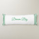 Texto editable "El sueño verde grande" sobre la almohada del cuerpo blanco.