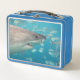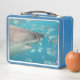 ¿Cansado de que la gente te robe el almuerzo? ¡Que este Gran Tiburón Blanco lo proteja y que nadie intente comer tu comida nunca más! Si quieres puedes personalizar esta impresionante lonchera añadiendo tu propio nombre o una frase pegadiza. ¡O es el regalo perfecto para cualquier amante de los tiburones o de los animales! Esta única y asombrosa caja de almuerzo metalizado presenta una imagen de primer plano de un gran tiburón blanco, tomada en uno de mis viajes de buceo a las islas Neptunas en el sur de Australia. Una experiencia muy emocionante y de una vez en la vida para ver a estos increíbles animales desde muy cerca. El gran tiburón blanco (Carcharodon carcharias), también conocido como el gran tiburón blanco, blanco o blanco, es una especie de gran tiburón caballa que se puede encontrar en las aguas superficiales costeras de todos los grandes océanos. El gran tiburón blanco es notable por su tamaño, con individuos femeninos más grandes creciendo a 6.1 m (20 pies) de longitud y 1.905 kg (4.200 libras) de peso al madurar. Sin embargo, la mayoría son más pequeños; los hombres miden de 3,4 a 4,0 m (de 11 a 13 pies), y las mujeres miden de 4,6 a 4,9 m (de 15 a 16 pies) en promedio. Según un estudio de 2014, se estima que la vida de los grandes tiburones blancos dura 70 años o más, muy por encima de las estimaciones anteriores, lo que lo convierte en uno de los peces cartilaginosos de más larga vida que se conoce actualmente. Los grandes tiburones blancos pueden nadar a velocidades de más de 56 km/h, y pueden nadar hasta profundidades de 1.200 m. El gran tiburón blanco no tiene otros depredadores naturales conocidos que, en muy raras ocasiones, la ballena asesina. Podría decirse que el gran tiburón blanco es el pez macrodepredador más grande del mundo y es uno de los principales depredadores de los mamíferos marinos. También se sabe que se aprovechan de una variedad de otros animales marinos, incluidos peces y aves marinas. Es la única especie sobreviviente conocida de su género Carcharodon. La especie se enfrenta a numerosos desafíos ecológicos que han dado lugar a la protección internacional. La UICN enumera el gran tiburón blanco como especie vulnerable, y está incluido en el Apéndice II de la CITES. También está protegida por varios gobiernos nacionales, como Australia.