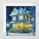 Casa victoriana bonito iluminada con adorno de vísperas de Navidades.