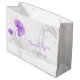 Entrega tus regalos de boda en esta bolsa de regalo especial del boda personalizada con tus nombres y el nombre de tu destinatario. Perfecto para añadir un toque personalizado a sus regalos de boda a su fiesta de bodas o cuando se lo entregue a un ayudante o boda. Una bolsa de regalo de arte con flores silvestres acuáticas en blanco, morado y gris. Coincide con una gama de otros productos bodas de la gama de flores silvestres acuáticas. Personalizar / personalice estas bolsas de regalo con sus propios nombres de novia y novios en un lado y gracias y nombre del receptor en el otro lado. Arte y diseño de acuarelas originales de Sarah Trett.