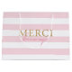Bolsa de regalo de agradecimiento Gold Pink Stripe Merci Beaucoup