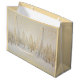 Elegantes árboles de Navidad dorados y plateados aparecen en un fondo blanco roto en esta vintage pintura acuarela. Los espumosos copos de nieve de oro caen en un maravilloso país invernal. Esta elegante interpretación aparece en esta bolsa de regalo de vacaciones de invierno para regalo festivo.