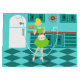 Con esta Bolsa de Regalo de Cocina Retro, puedes tomar tu pastel y comerlo también. Este kitsch dibujo de arte minimalista cuenta con una perfecta ama de casa de los años 50, en su moderna cocina de mediados de siglo. El bonito panadero lleva puesto un vestido floritario, verde y un delantal blanco con detalles rojos. Ni un pelo en su rubia cabeza está fuera de lugar. De un lado, ella está sosteniendo el fruto de su trabajo —una preciosa tarta de fruta coronada por retretes. Una mirada y sabrás que sus costras tortas escurridas no son iguales a ninguna. Se encuentra en una pista de aquagym y verde azulada de chiringuito, lo suficientemente limpio como para comer. Contra una pared acuática, vemos una camarilla verde azulada con adornos de agua, una contraparte roja, crías de cajón rojo y acentos de starburst negro. Un reloj rojo estelar está colgado en la pared. A un lado, un frigorífico blanco con mangos de plata está muy a la última. Al menos, el refrigerador era el más moderno de los años 50. Ahora, es simplemente un sueño. Ya sea que seas Suzie Homemaker o simplemente tengas una afinidad por todas las cosas vintage, seguro que te encantará esta riquísima porción de Americana.