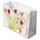 Bolsa de regalo con estampado floral, el texto de feliz cumpleaños puede ser personalizado para cualquier ocasión, y el texto es extraíble. El fondo blanco se puede cambiar a cualquier color.