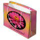 Una bolsa de regalo para una persona hermosa para el cumpleaños o la personalización para cualquier ocasión. Flor de zinnia rosa grande, rosa y amarilla
