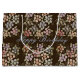 Bolsa de regalo de papel florido con colores suaves. El fondo marrón chocolate puede cambiarse a cualquier color. El texto gris azul feliz de cumpleaños puede ser personalizado para cualquier ocasión especial.