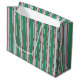 Las audaces rayas navideñas decoran esta fiesta bolsa de regalo. Esta bolsa es genial para un fiesta Navidad, hombres, mujeres, vacaciones, Navidades, etc... El diseño es de arte original.