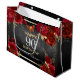 Rosas rojas, falsas hojas de Relieve metalizado de oro, minúscula mariposa roja y dorada. Elegante diseño floral para cualquier celebración de cumpleaños. Fácil de personalizar con plantilla. Magnífico diseño de la bolsa de regalo de cumpleaños.