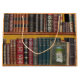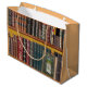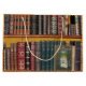 Bolsa de regalo con imágenes de libros en una biblioteca.