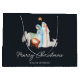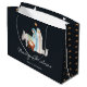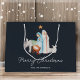 Encantadora bolsa de regalo de Navidades religiosos de natividad azul oscuro con una hermosa escena de natividad acuática. Perfecto para compartir la alegría de la temporada con los más cercanos. Las palabras "Feliz Navidad" están elegantemente escritas debajo de la escena, representando la magia y maravilla de los Navidades.