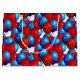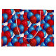 La bolsa de regalo de papel se muestra en un color blanco con un acabado brillante con una estampación festiva de globos azules y rojos. Gran tamaño mostrado Personalizar esta bolsa de regalo o compra como está.