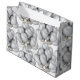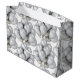 La bolsa de regalo de papel se muestra en un color blanco con un acabado brillante con una estampación de globos de color plateado festivo. Gran tamaño mostrado Personalizar esta bolsa de regalo o compra como está.
