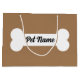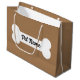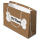 Bolsa de regalo de personalizado de huesos de perro grande para el nuevo propietario del mascota. Personaliza con tu propio nombre o texto de agradecimiento. Color de fondo marrón o personalizado. Diseño compacto con tipografía de guiones. Ideal para la fiesta de cumpleaños animal, celebración, tienda, tienda, paseador de perros, vendedor de perros, niñera mascota, amante de los perros, propietario de mascotas, madre de perros, etc.
