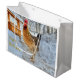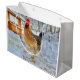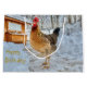 Esta bolsa de regalo contiene una gallina de cuerno marrón parada fuera de su casa en Connecticut.