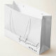 Bolsa de regalo para dama de honor diseñada a medida con un diseño moderno en blanco y negro.