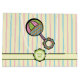 Este colorido rattle, dulce y encantador, está decorado con segmentos punteados rosados y verdes de inspiración circense y con láminas azules y naranjas en el ganado principal, puntos de polka amarillos en el mango morado y segmentos de colores vivos como el vidrio teñido en el agarre en forma de flor. Las franjas en amarillo suave, azul y rosa crean un fondo suave para contrastar el vibrante ruido. Personalizar la flor de monograma con la próxima pequeña inicial para crear una bolsa de regalo única para tu regalo elegido. No olvide visitar la colección completa de Simply Sweet Rattle para más regalos y productos para una ducha de bebé o la pequeña de su vida.