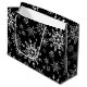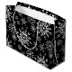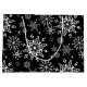 El bolso de regalo de vacaciones se muestra en un diseño festivo de copos de nieve de invierno. Color negro