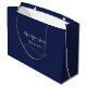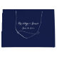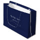 Elegantes bolsas de regalo de boda azul marino con texto blanco cambiable y gráficos decorativos