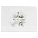 Bolsa de regalo de boda elegante con vegetación verde y dorada y Mr & Mrs en negro sobre fondo blanco. Fácil de personalizar texto, color de texto. Una hermosa presentación de regalo para cualquier evento de boda, querrás tener extras a mano. Mezcla y combina toda la colección Elegant Greenery / Wedding de TMCdesigns.