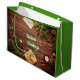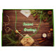 Bolsa de regalo de temporada para navidades decorada con pinos y especias y sobre un fondo de madera... es divertido y festivo!! ¡Feliz Navidad a todos!