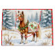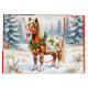 Una bolsa de regalo para Navidades superadorables que tiene un ilustracion estilo acuarela ai de un Pony de Shetland de pie en un caprichoso campo de vacaciones durante un día de invierno nevado con un telón de fondo de pinos y un lindo fondo holly en rojo y verde.