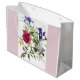 Las flores adornan esta preciosa bolsa de regalo que viene en 3 tamaños! Use esta bolsa de regalo para bodas, cumpleaños y más. Las flores en el diseño son iris violeta, peonías rosadas y blancas y rosas blancas.