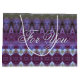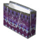 Gran y elegante mochila de regalo de papel de diseño, en morado oscuro, verde azul claro y oliva. El texto para usted se puede cambiar a cualquier nombre, o el texto se puede quitar. El patrón también es extraíble si prefiere una bolsa de regalo de color sólido en cualquier color que elija.