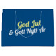 Una bolsa de regalo para navidades en sueco. Dice "Dios Jul Toch Gott Nytt År" deseando una feliz Navidad y feliz año nuevo.