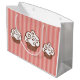 Rayas de caramelo rosado y bizcochos decoran esta bolsa de regalo de vacaciones. Esta bolsa es genial para todos los chicas, adolescentes, mujeres, cumpleaños, ducha de bebé, vacaciones, etc... El diseño es de arte original.