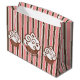 Este lindo bolso de regalo está decorado con quequitos y rayas. Esta bolsa de quequitos a rayas rosa y chocolate es genial para chicas, adolescentes, mujeres, cumpleaños, ducha de bebé, Navidades, El día de San Valentín, etc... Personalice esta bolsa de regalo cambiando el nombre. El diseño es de arte original.