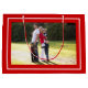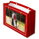 Navidades fotos de vacaciones y bordes con deseos rojo gran bolsa de regalo. Fotografía © Storytree Studios, Stanford, CA