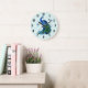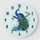Grande Diseño de reloj redondo de pavo real y mosca negra