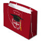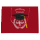 Bolsa de regalo para graduación de una escuela de derecho creativa con escalas únicas de justicia en negro y tapón de oro con fondo rojo. Para personalizar el texto de edición para añadir el nombre de la nota de abogado.