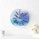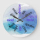 Grande Números francófonos Azul acuarela reloj redondo