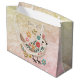 Grande Pájaro pequeño deja flores bolsa de regalo rosa