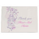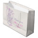 Muestre su agradecimiento a sus bodas asistentes con esta bolsa de regalo de boda chica de flores. Perfecto para llenar con un regalo especial para mostrar su aprecio. Una pareja de pájaros adorna un dibujo gráfico de pájaros abiertos colgando de un floreciente árbol primaveral con corazones. Diseño moderno y moderno de boda de moda que forma parte del conjunto de boda romántico jaula de pájaros. tonos Bonito pastel violeta y rosa sobre un fondo blanco roto. Personalizar / personalice estas grandes bolsas de regalo con su propio nombre de chicas de flores.Dibujado y diseñado exclusivamente por Sarah Trett.
