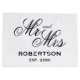 Personalizado Sr. y la Sra. newlyweds una gran bolsa de regalo boda para favores de fiesta y artículos de ducha de novia. Pequeños, medianos y grandes tamaños. Bolsas de personalizable con apellido y fecha de matrimonio establecida. Añade tu propio nombre familiar. Colores de personalizable. Elegante plantilla de tipografía en blanco y negro para parejas recién casadas, invitados, damas de honor, etc.