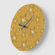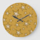 Diseño moderno con estrellas doradas y blancas en un fondo amarillo oscuro. Reloj de pared con un diseño de personalizable para que puedas personalizar con tu propio texto, imágenes e ideas. Tenga en cuenta que se trata de una imagen impresa creada con fotografías originales y técnicas digitales, que no brilla ni contiene chispas reales.