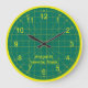 El fabricante de edredones o costureras de su vida apreciará este reloj personalizado para el costurero. Es un diseño clásico de estera de corte verde impreso con un amarillo fuerte fácil de leer números faciales. El diseño redondo tiene dos tamaños. Vea también el reloj cuadrado y muchos otros relojes únicos con temática de costura en esta colección en Clock O Rama en Zazzle.