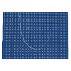 Forma blanca de la mano "I Love You" con un corazón dentro contra un fondo azul en un patrón repetido.
