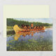 Grandes Exploradores (1905) de Frederick Remington es una pintura del oeste americano de arte fino vintage que presenta a Radisson y Groseilliers. Hombres de frontera, exploradores y comerciantes de pieles del norte con indios nativos americanos en una canoa que pasa junto a plantas naturales de juncos y nenúfares en un río tranquilo.