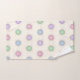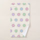 Los grandes puntos de polka, en tonos pastel, son rosa, azul, verde y violeta, con un fondo de blanco antiguo y cálido.