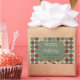 Gran pegatina de vacaciones de Navidades Retro Dots con grandes puntos de polka retro de arándanos, verde y bronceado y una pancarta verde que dice Felices Fiestas que puedes personalizar con tu apellido! Este pegatina festivo coincide perfectamente con las tarjetas de fotos de vacaciones, franqueo y etiquetas de direcciones de retorno con nuestro diseño Big Retro Dots.