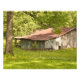 Fotografía de viajes con granero vintage y rastrillo antiguo rodeado de hierba verde primavera y árboles en el área rural de Tennessee. Este tranquilo paisaje pintoresco hará de su visita a Tennessee un divertido regalo de recuerdo.