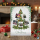 ¡Envíe hermosos saludos de vacaciones con estas 5 tarjetas de Navidades de collage de fotos! Presentan cinco plantillas de fotos a la izquierda de la tarjeta, con una tipografía elegante y moderna a la derecha, que dice "Feliz Navidad". El diseño de esta cédula de fotos navideña "¡Te deseamos una Feliz Navidad!" presenta una moda rústica de invierno de una granja de árboles de Navidad que enmarca un retrato familiar favorito. Incluye un fondo gris nevado con luces de trineo de cuerda colgante y pinos de acuarela verde recién cortados. Personalice su elección de saludos, el apellido de su familia y el año. Un patrón de coordinación de pequeños pinos y un collage de fotos de 5 cuadros se visten en la parte trasera de la tarjeta.