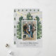 El diseño de esta cédula de fotos navideña "¡Te deseamos una Feliz Navidad!" presenta una moda rústica de invierno de una granja de árboles de Navidad que enmarca un retrato familiar favorito. Incluye un fondo gris nevado con luces de trineo de cuerda colgante y pinos de acuarela verde recién cortados. Personalice su elección de saludos, el apellido de su familia y el año. Un patrón de coordinación de pequeños pinos y un collage de fotos de 4 cuadros vestidos en la parte posterior de la tarjeta.