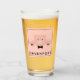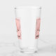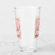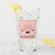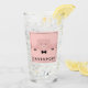 Vidrio de bebida personalizado con un dibujo de la cara de un lindo cerdo rosado. Llevando una corbata negra. Levantado por sus pezuñas negras y mirando hacia usted. Dibujo tierno y caprichoso. Envuelto en un fondo rosado con algunos corazones desvanecidos aquí y allá.