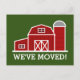 Casa de granjas rojas cambio de dirección postal en movimiento. Cute tarjetas móviles para un nuevo hogar o reubicación. Diseño divertido para nuevas casas, negocios, empresas, agricultura del medio oeste, etc. Casa rural de pintura roja y diseño de silos con tipografía moderna.